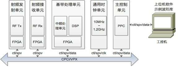 硬件平台标配版本由射频发射单元、射频接收单元、中频处理单元、基带处理单元、通用时钟单元、主控制单元和工控机组成,扩展版本可包含x86单板机、射频前端单元与天线等硬件模块或进行多通道/处理能力升级。